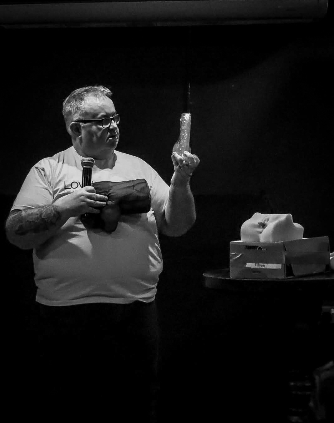 So I’ve been performing comedy for years, but officially I started by doing one of Viv Gee’s courses, which was June 2022 was my first gig. And that was to raise money for a cancer charity because people in my family were going through treatment at the time.